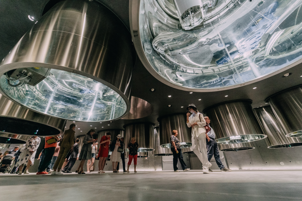 Агора находится на самом нижнем уровне нашей гравитационной винодельни, только представьте - вы окажитесь на глубине 24 метров, а прямо перед вами предстанет зеркальная площадь внутри куба: масштабного и при этом будто невесомого, расположенного в центре озера.